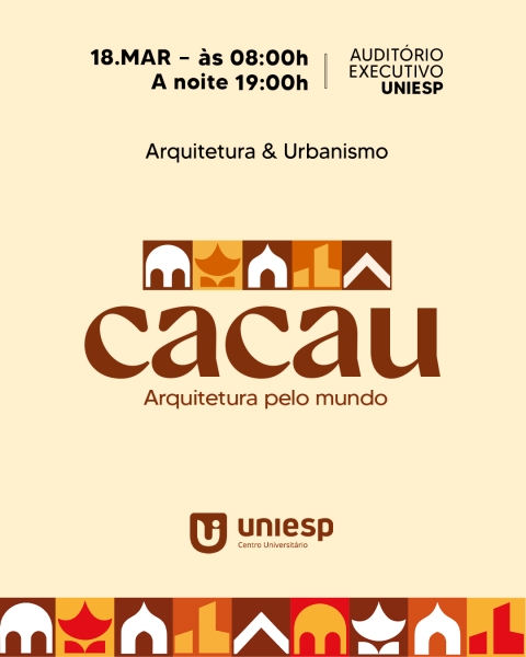 A CACAU acontecerá no Auditório Executivo do UNIESP, das 8h às 11h30 e das 19h às 21h30.