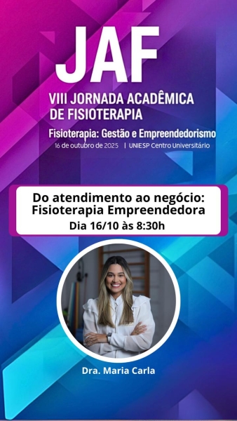 VIII Jornada Acadêmica de Fisioterapia acontece no dia 16 de outubro