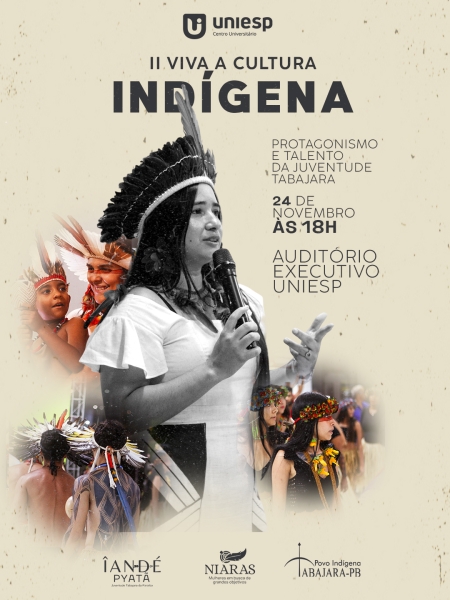 No dia 24 de novembro, o UNIESP Centro Universitário realizará a segunda edição do “Viva a Cultura Indígena”. O evento é uma iniciativa da instituição em parceria com comunidades indígenas locais e órgãos de apoio aos povos originários, como a FUNAI, e busca a valorização da cultura indígena e o diálogo entre os saberes tradicionais e os acadêmicos.